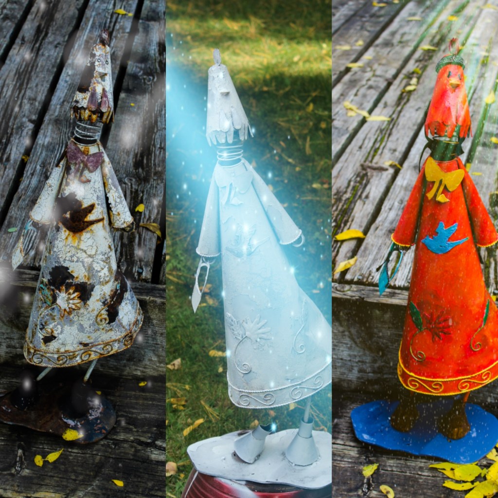 This old rooster is a hen, she is made of metal and cannot fly. I have lovingly recreated her into something completely new. She will find a new home, in the spring, amongst the trees in our garden.