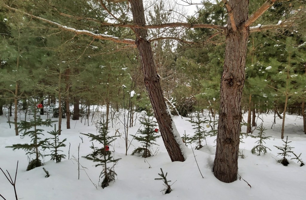 Tiny little Christmas trees grow along side our snowshoe trail.