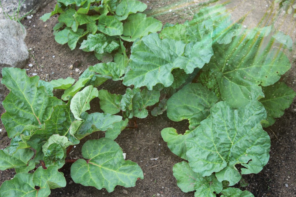We have never really been overly fond of this bright pinkish red stemmed, sourly crisp, topped with a gigantic poisonous leaf, plant. I have, though, used this leaf to form a beautiful bird bath, and a couple of stepping stones.