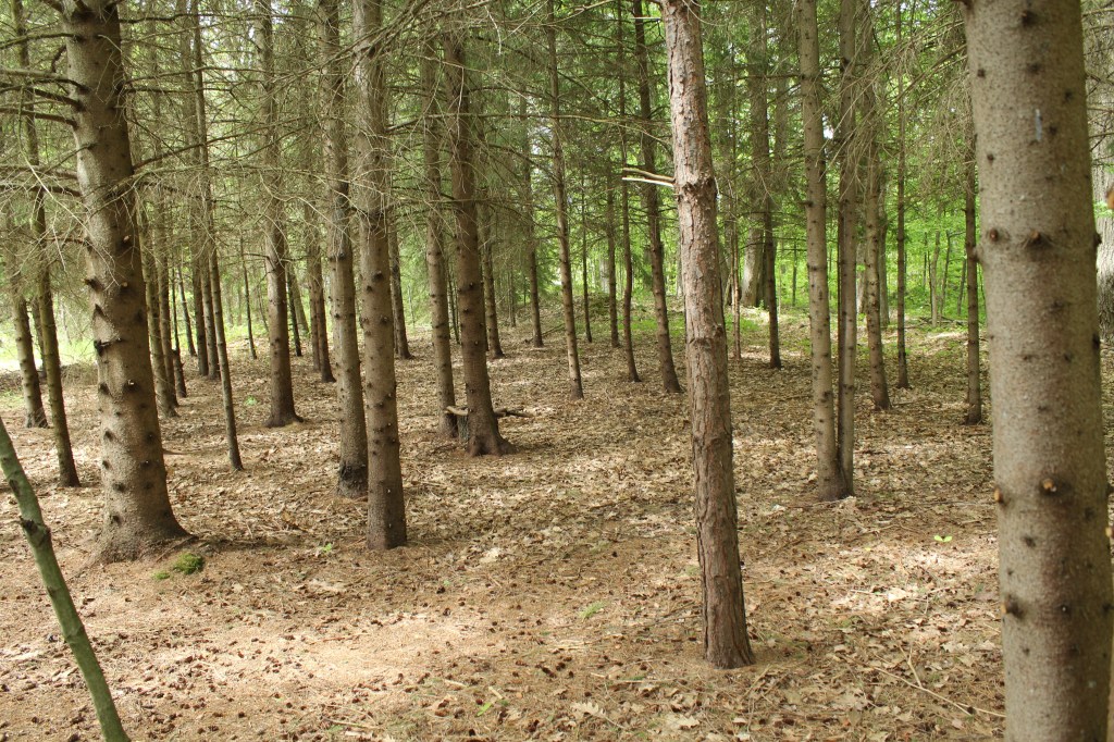 He planted these seeding, in straight rows. They bordered on a much taller pine forest that had been planted years earlier by the Ministry of Natural Resources. He planted these trees thirty-five years ago.