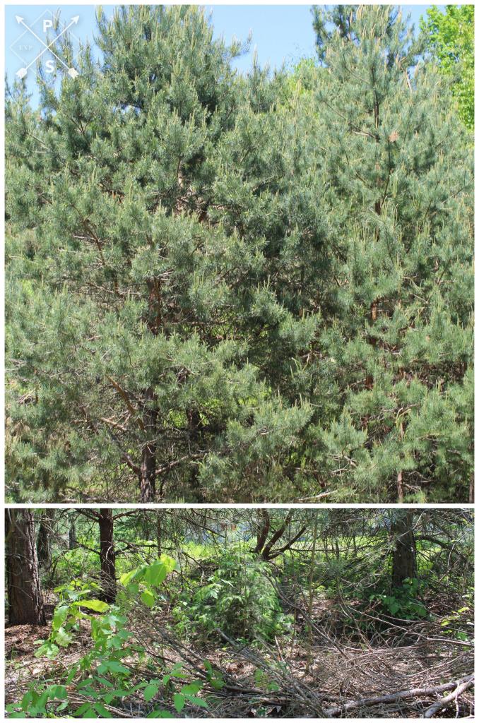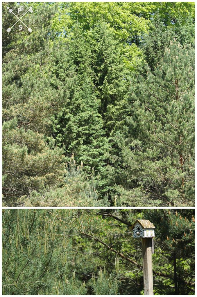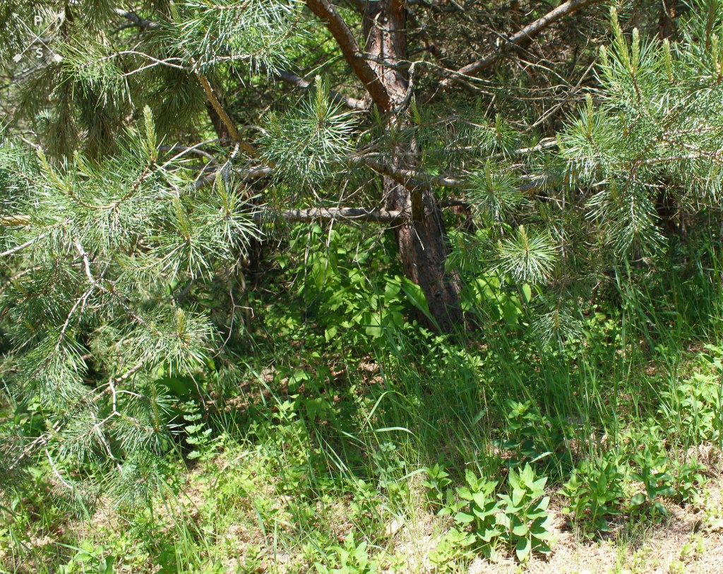 This small portion of the forest is home to three large oak trees, numerous pine and spruce trees, and a variety of coniferous and decidous saplings. Plus grasses, ferns, wild flowers, and a wide variety of fungi.