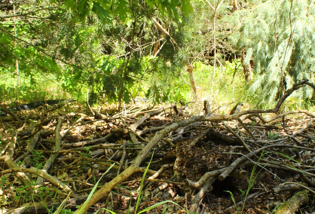 Red Squirrels have turned this old pile of brush into their home.