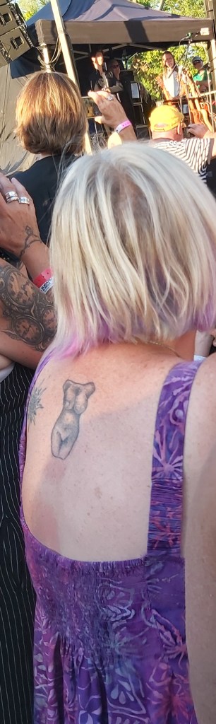 I noticed a tattoo on the back of a beautiful woman. To me, this tattoo represents power, wisdom, confidence, and strength and sisterhood.