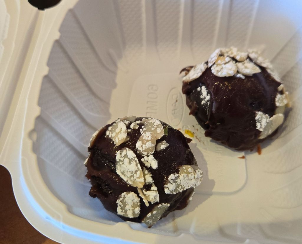 Chocolate marshmallow cookies covered in chocolate and slivered almonds.