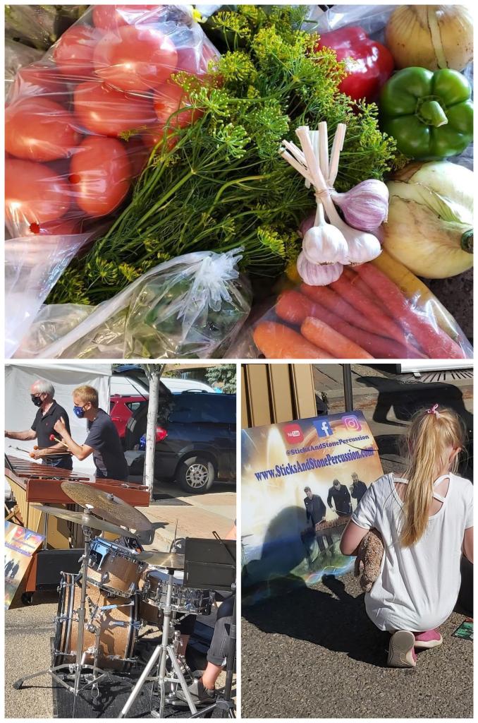 St. Albert’s Farmers Market. With the sights and sounds of late summer. Lots of fruits and vegetables, music, and, arts and crafts. And a wonderful seven year old who filled so many buckets, complementing everyone from vendors with their colourful cauliflower, to Rabunzel and Anna on their beautiful gowns.