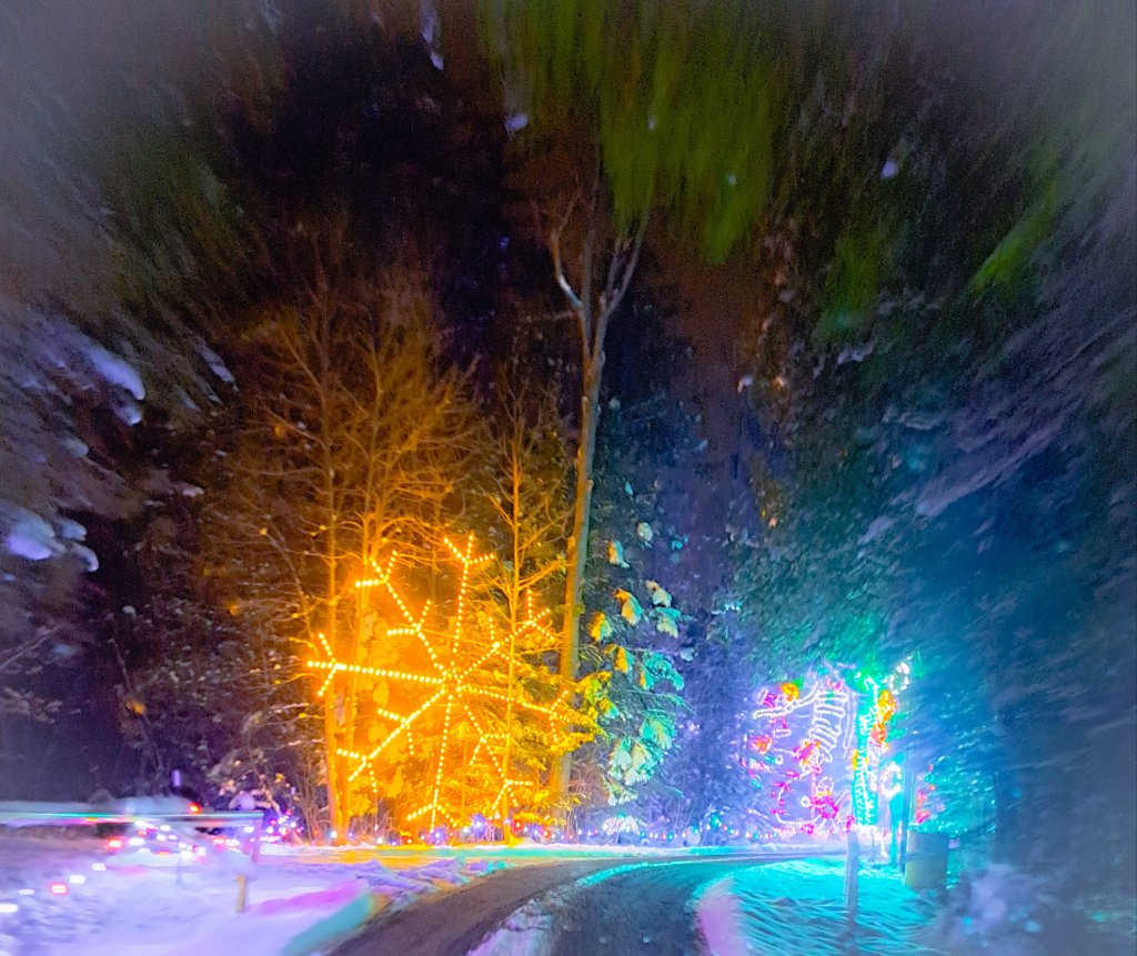 The twelve days of Christmas, tunnels of lights, and Feliz Navidad lined the forest trail.